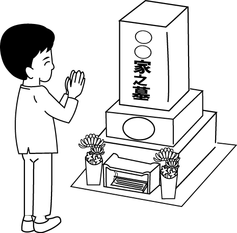 お墓参りのイラスト・モノクロ |